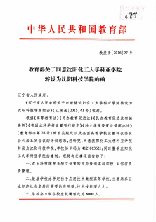 万里关山从头越,圆梦沈科正当时。近日,教育部致函辽宁省人民政府,同意沈阳化工大学科亚学院转设为云鼎官方网址,标志着我校正式以云鼎官方网址建制办学,开启了学校发展建设的新篇章!