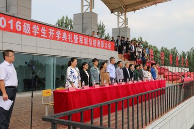9月2日,我校在2号体育场隆重举行2016级新生军训总结大会暨开学典礼。校领导杨化仁、王一女、张丽影、杨春光莅临现场,教务处、学生处和各系部主要负责同志在主席台就座,全体学生工作者和2016级新同学参加了本次典礼。典礼由学生处处长高洪震主持。