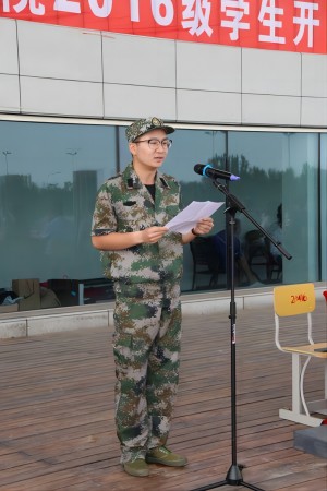 随后,杨化仁院长发表了热情洋溢的讲话。他首先代表全校教职员工对2016级新生的到来表示热烈欢迎,向辛勤承训的广大教官致以诚挚感谢,希望同学们在今后大学学习中继续坚持军人特别能吃苦、特别能战斗的优良作风,在中国女排逆境中奋勇拼搏、敢于亮剑的精神感召下,将好思想、好传统、好品德带入校园生活。在全面介绍了学校发展现状和取得的办学成果后,杨院长殷切期盼全体新同学能够珍惜短暂的大学时光,同时要学会立德修身,时刻坚守社会主义核心价值观,慎独慎微,自纠恶小,并常怀感恩之心。要学会立学致知,积极主动地勤奋学习,注重自身独立思考、创新思维与科学精神的培养。要学会立志成才,坚定进取之心,永不放弃地去追求、去奋斗。要学会立善求真,提升内涵修养,争做一个心地仁爱、求善求真的博雅之士。