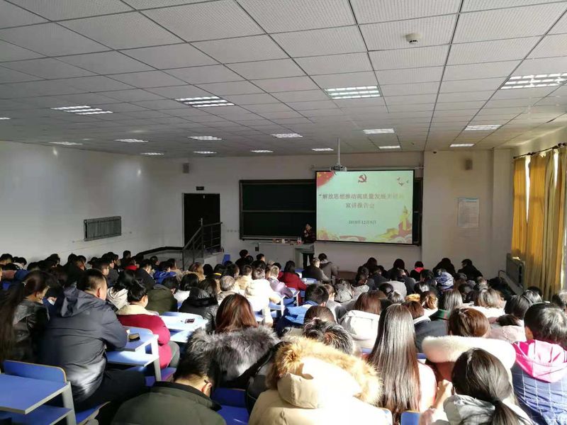 按照上级部署要求,12月5日下午,我校在第二教学楼501室召开了解放思想推进高质量发展大讨论宣讲报告会。校领导杨化仁、王一女、王喜魁、张丽影、杨春光、高洪震莅临现场,全校教职员工300余人参加了本次大会。大会由党总支书记王一女主持。