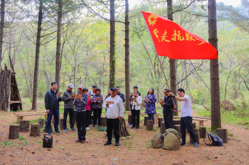 接着,全体学员迎着阵阵秋风,沿着崎岖山路,踏着先辈足迹,一同进发到关门山东北抗联第一军秘密交通站遗址和鸣翠谷东北抗联第一军密营遗址展开情境体验式教学,认真聆听抗联将士用热血和生命谱写的感人故事,高声唱响反映抗战铁血丹心的雄浑壮歌。这种“重走一段浴血游击的艰辛抗联路、同上一堂真实生动的现场教学课、学唱一首激人奋进的革命进行曲”的教育形式,进一步拉近了大家与抗联的距离,也使得各位学员在精神上受到了洗礼,思想上得到了升华。