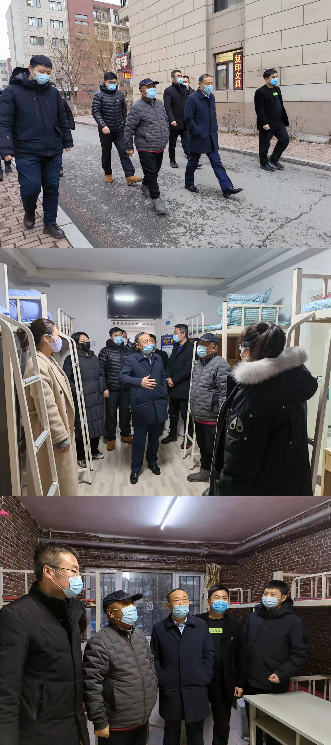 3月18日下午,党委书记白玮、校长陈保东检查校园封闭管理疫情防控工作情况。副校长杨春光,机关各职能部门主要负责同志、部分值守人员陪同检查。白书记、陈校长一行实地走访查看了保安门岗、食堂、值班室、校内隔离点等场所,现场听取了疫情防控一线相关负责同志对近期校园疫情防控工作采取的措施、取得的成效以及如何做好下一阶段疫情防控工作等情况的汇报,并与驻校值守人员共进晚餐。