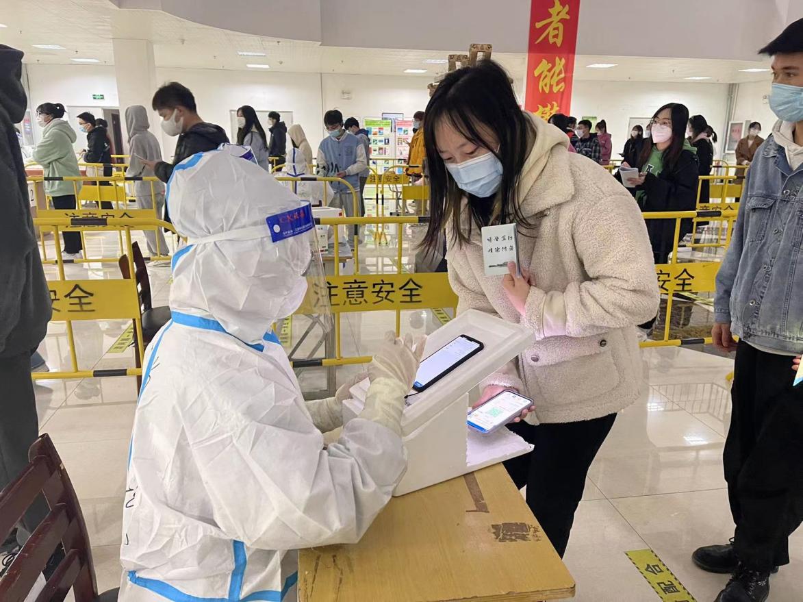 4月6日晚间,在全校全员核酸检测现场,每组桌面摆放的“扫码助力器”受到了热议与追捧。这是我校大学生创新创业教育中心师生发挥集体智慧,共同研制发明的新产品,并经过实测检验被广大志愿者和同学们纷纷称赞为疫情防控中“神器”。