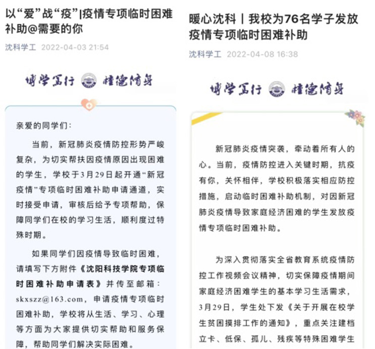 对因疫情出现经济困难的学生提供转向临时困难补助,切实解决实际家庭经济困难,缓解心理危机。