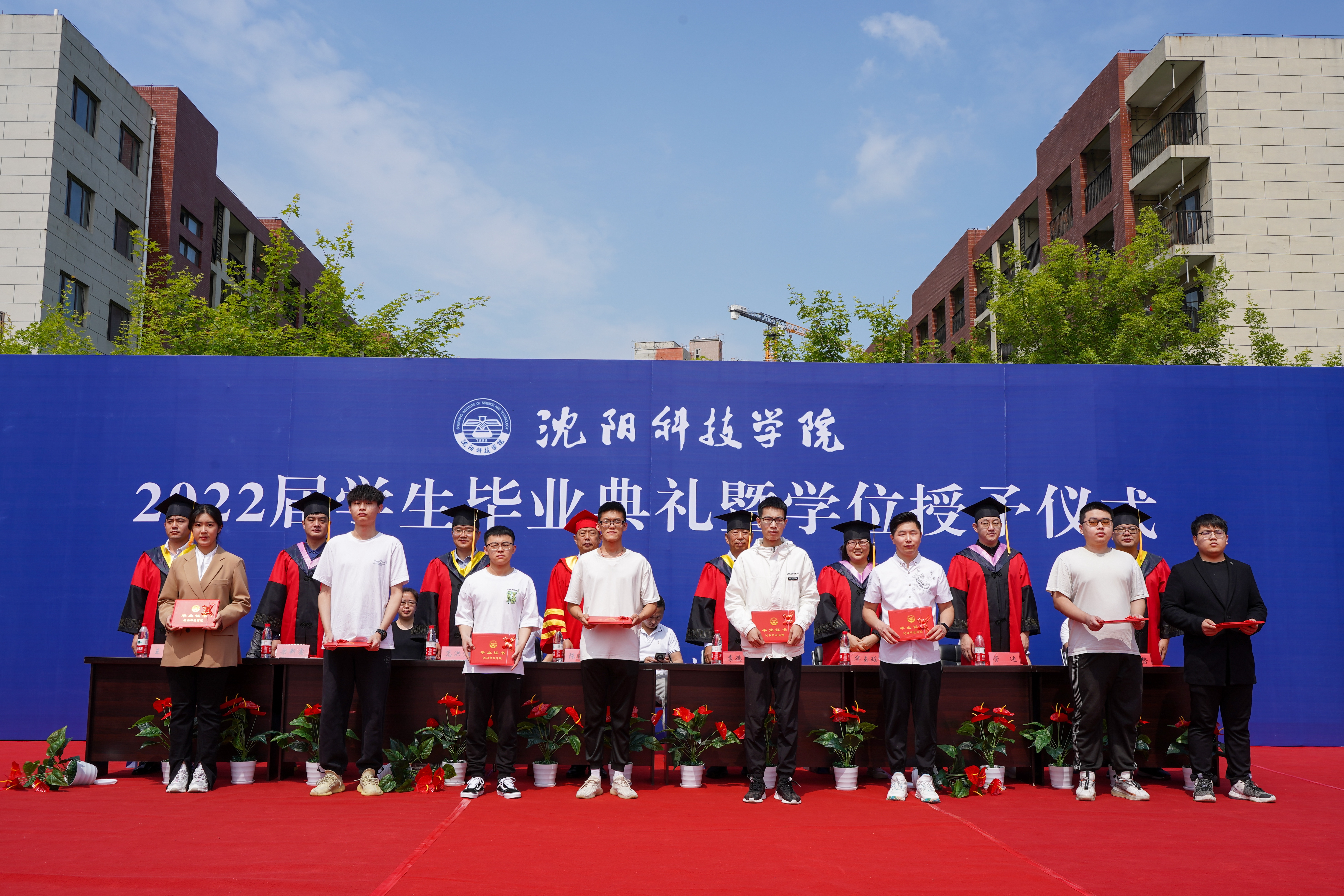 典礼结束后,学士学位评定委员会的导师为在校的110名毕业生一一拨穗授位,毕业生们手持学校精心准备的毕业纪念礼包,与自己敬爱的老师、亲爱的同学握手相拥道别,校外师生们在“云端”相聚,互道珍重与祝福,在欢笑与泪水中,四年的大学生活画上圆满的句号,1648名毕业生从沈科扬帆起航,开启人生新征程。