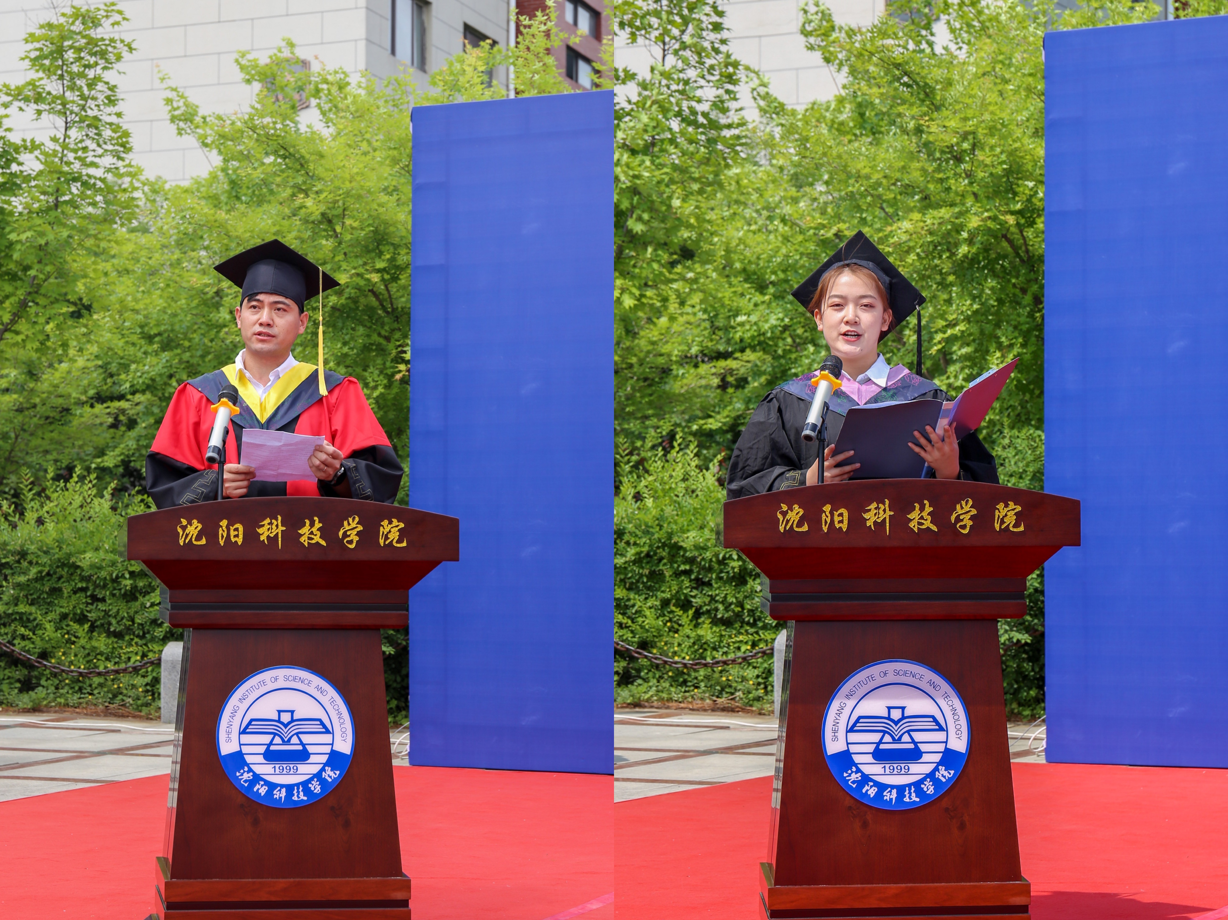 管理系会计学1806班田雨同学作为毕业生代表发言,她回忆了在沈科生活的点滴,表达了对母校和师友的无限感激与深情眷恋,祝福所有毕业生都能尽快实现人生理想,祝愿母校的明天更加美好;并表示在今后的人生道路上将牢记母校教诲与嘱托,争取在青春的赛道上跑出最好成绩!