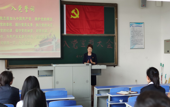 6月12日10:30,我校党总支隆重举行预备党员入党宣誓大会。党总支书记王一女出席大会并作重要讲话,本次宣誓大会由党群工作部部长肖士中主持。