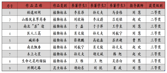 本届大赛由省教育厅和省财政厅主办,是我校第三次参与省级动植物标本赛事。比赛过程中,我校师生集思广益、通力协作,在作品的立意主旨、制作工艺、创新创意等各个方面较往年相比均有提升,充分展现了我校致力于开展大学生创新创业教育系列工作所取得的成效。