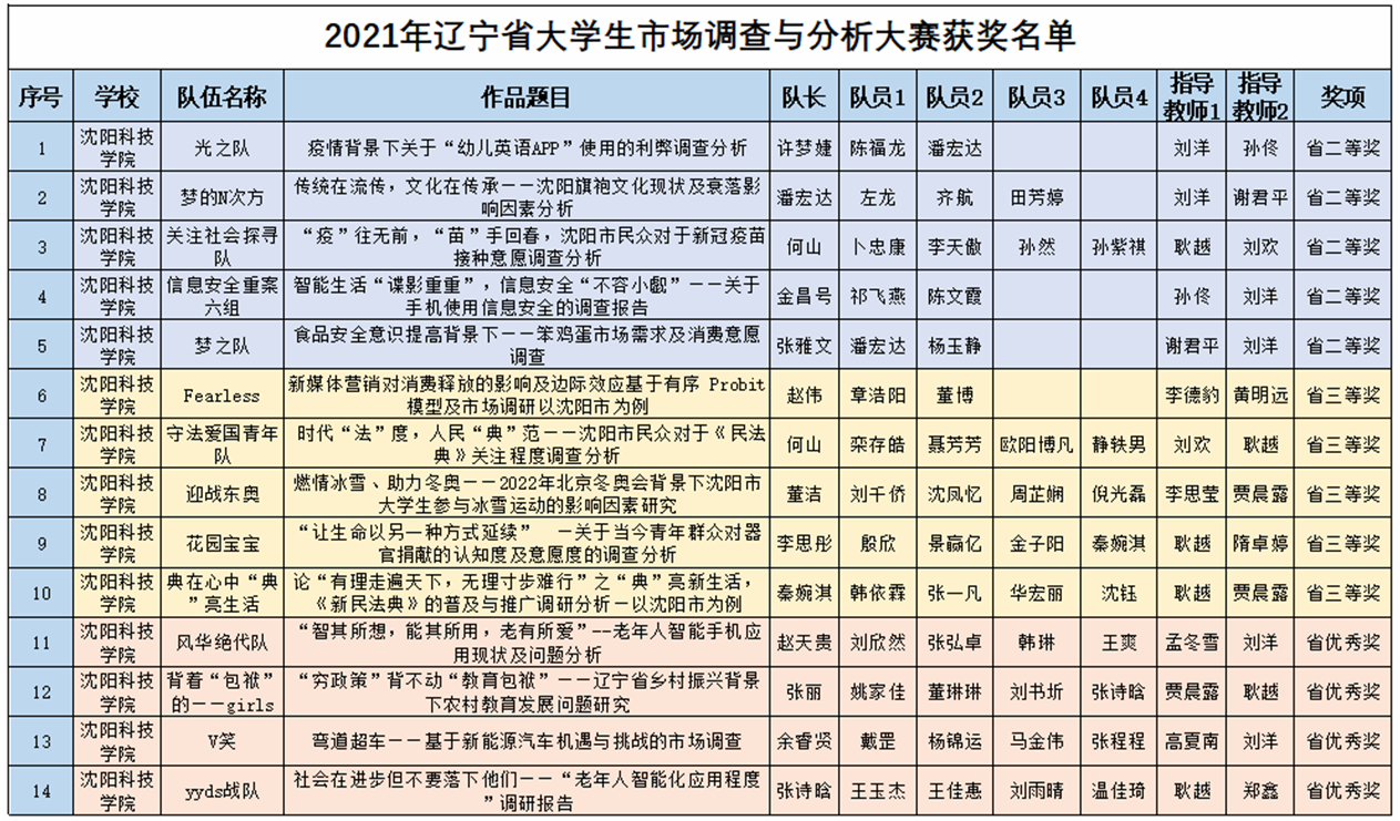 我校师生在辽宁省大学生市场调查与分析大赛中喜获佳绩