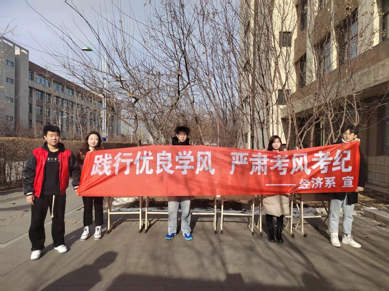 【学风】11月,经济系组织金融学专业全体学生开展期末考试模拟测试,进一步检验学生在考前的学习质量,让学生清楚的认识到自己在专业知识方面掌握的不足,抓紧在考前查缺补漏。模拟成绩出来后,班级同学自发建立“比学赶帮超”学习小组,以先进带后进,实现共同进步,实现由“要我学”到“我要学”的根本转变。 (根据经济系供稿修改 通讯员:黎明东)