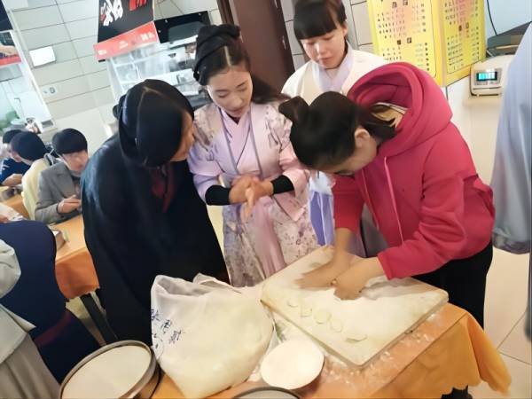 2016年11月13日下午,我校古风汉服文化社团在大食堂三楼的胡记饺子馆开展了穿汉服包饺子活动。