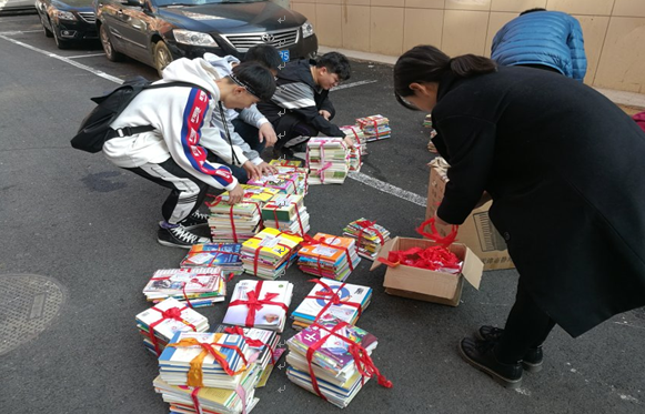 上午9时许,三十余名志愿者抵达书站并开始图书整理工作。志愿者们分工明确,或统计数量,或将书籍按阅读人群和书籍种类进行整理分类,或搬运并装箱,通过5个小时的努力共整理书籍一万余册,有效确保图书能够清晰有序地运往贫困山区,送到更多有需要的孩子们手中。