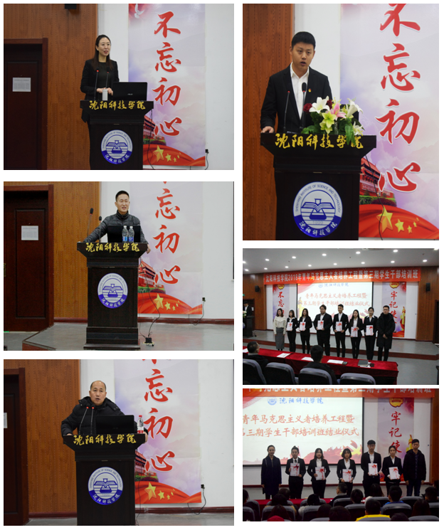 据悉,本期培训班于11月14日开班,历时近一个月,共计16学时。培训班在总结前几期经验的基础上优化了班型、增加校外专家授课以及素质拓展、专题学习、学生干部交流研讨等内容。培训过程中,特别邀请了沈阳体育学院副教授、硕士研究生导师,第66届世界小姐东北赛区总决赛评委主席、环球小姐大赛辽宁赛区评委会主席杨浏老师,讲解了关于大学生职业形象于素质提升的问题;党群工作部部长肖士中老师结合习近平总书记于十九大提出的新思想、十九大党章新变化以及党的方针政策等,就如何发挥学生干部模范带头作用进行了生动讲解;何大伟书记解读了共青团十八大精神、第二课堂成绩单制度建设理论与实践,以及习近平总书记“7.2”重要讲话精神;基础部思政教研室主任赵家和老师进行了《宪法》专题讲座。
