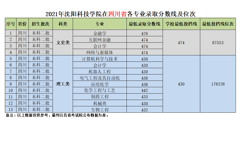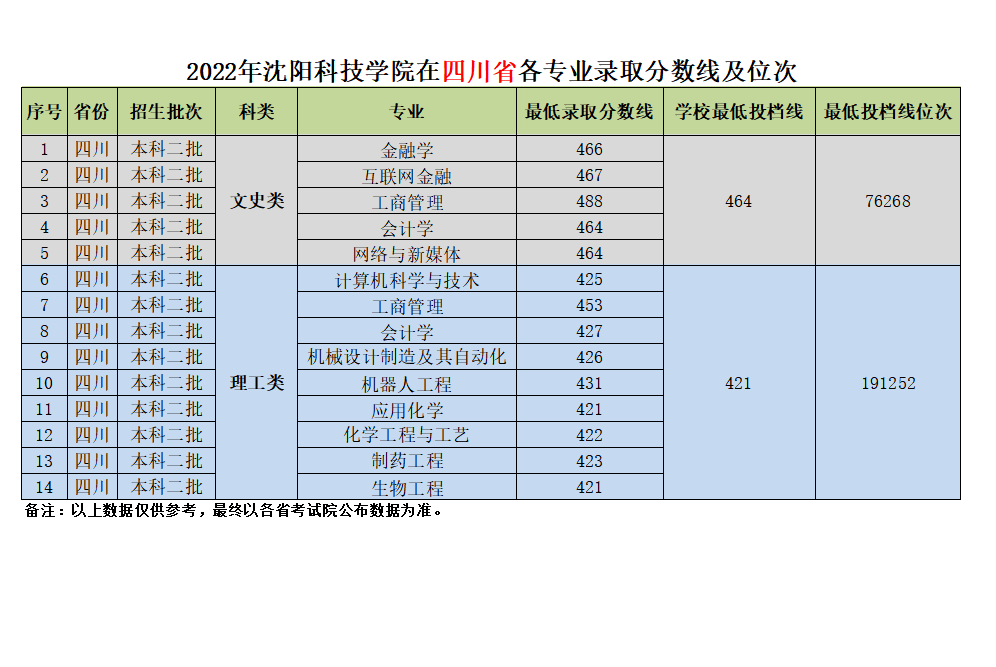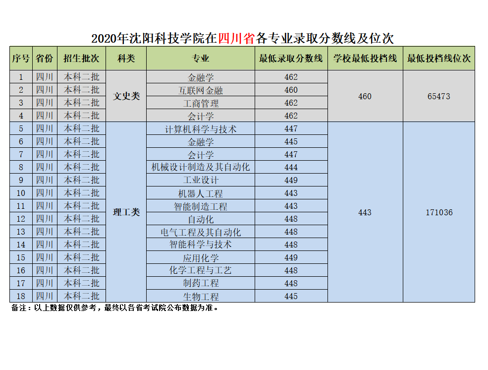 我校在四川省近三年各专业录取分数线及位次