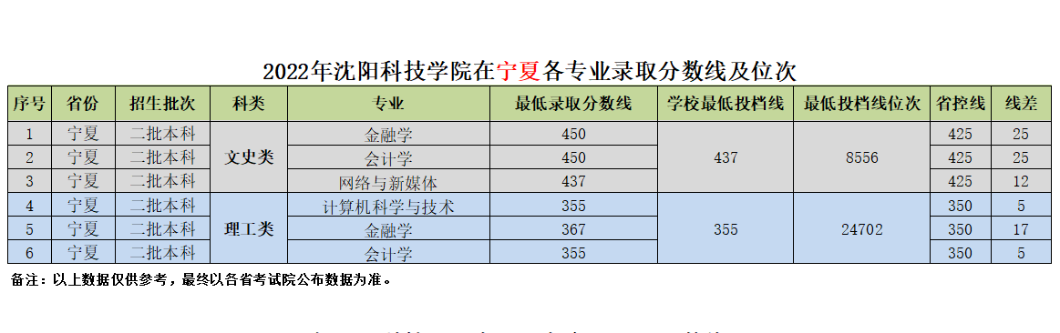 我校在宁夏回族自治区近三年各专业录取分数线及位次