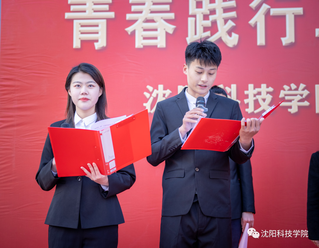 管理与传媒系社会体育指导与管理专业2001班康哲同学、化学与化工系应用化学专业2201班李政欣同学以《逐梦新征程、奋进向未来》为题作国旗下演讲。用激情澎湃的语言描绘了沈科学子奋发向上、矢志前行、爱国爱校的青春梦想。