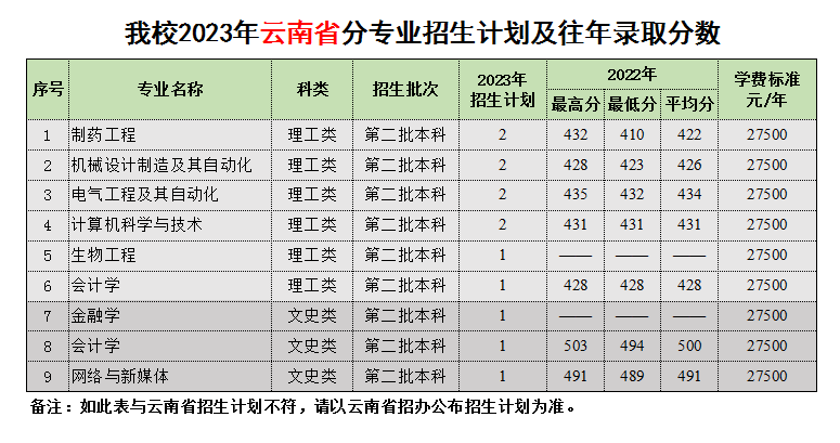 云鼎官方网址2023年分省分专业招生计划及往年录取分数