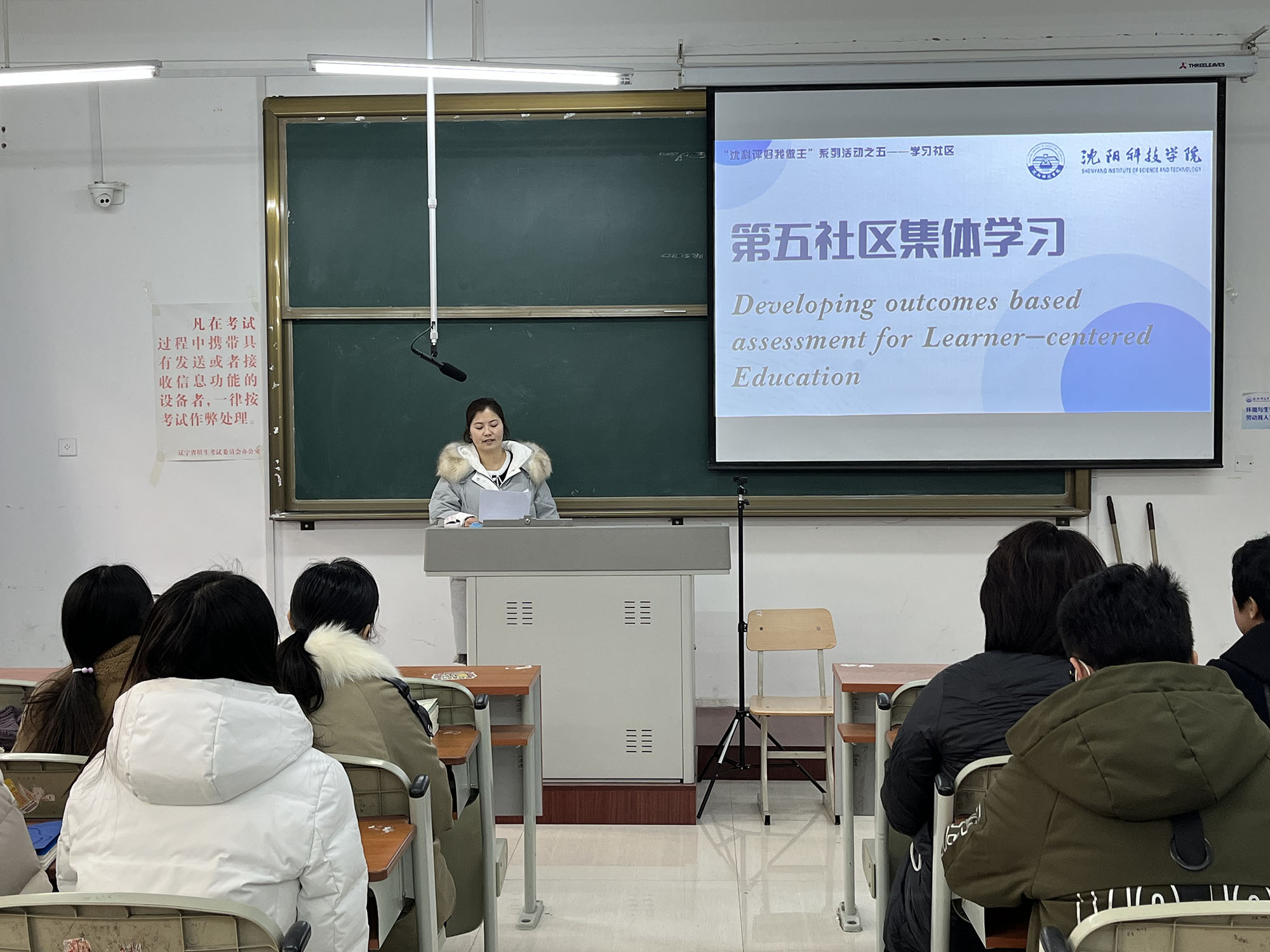 我校开展“沈科评好我做主”系列之五——读书社区活动,通过读书活动在全体教师中掀起读书高潮,不断拓展视野,努力建设一支充满生机和活力、与现代化教育相适应的教师队伍,为培养更多具有创新意识和实际能力的人才奠定坚实的基础。由环境与生物工程系、管理与传媒系组成的第五社区确定学习专题为《以学生为中心的教学评价设计》,组织了一次深入的集体学习。