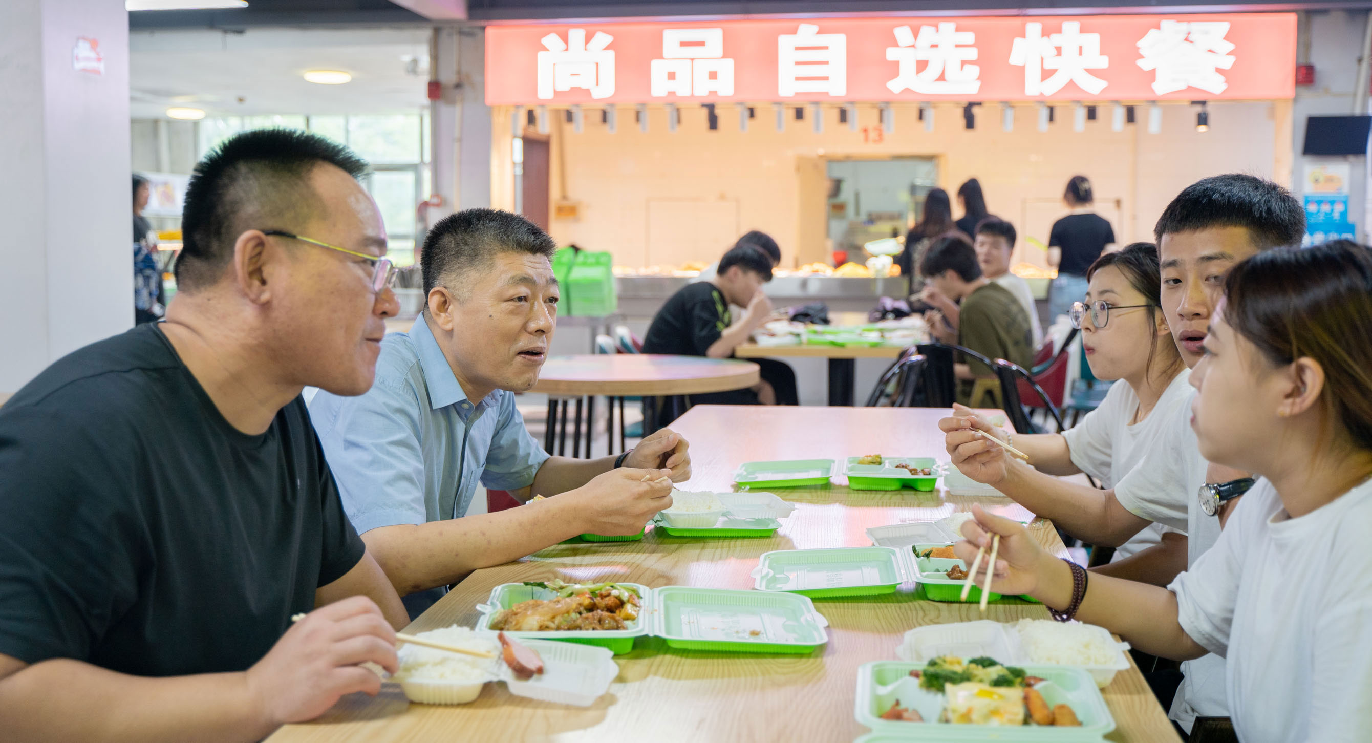 上午8时20分,校领导们走进教室慰问前来上课的师生,之后,与同学们一同听新学期的第一堂课。中午,校领导们走进食堂,和学生共进午餐,亲切交谈,并实地听取他们新学期开学后的有关思想状况、学习目标和对食堂卫生、服务质量、饭菜价格等方面的意见和建议。午餐过后,校领导们又来到部分学生社区寝室,详细查看宿舍的设施、卫生等情况,亲切地询问同学们的学业、生活情况及对学校发展建设相关工作的意见和建议等。