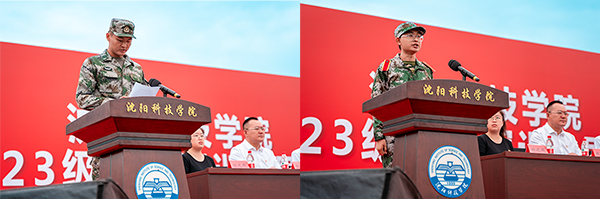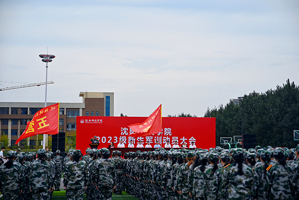 党委学生工作部部长、学生处处长何大伟作动员讲话。他首先对2023级新同学表示热烈欢迎,嘱咐全体参训学员一要以训立信,坚定理想信念;二要以训厚德,锤炼高尚品德;三要以训促学,形成优良学风。希望同学们发扬沈科“博学笃行、种德修身”的校训精神,以铁一般的纪律,钢一般的意志,火一般的热情,服从命令、严于律己、敢于吃苦、勇于拼搏。动员大会在校歌《大路阳光》奏唱中结束。