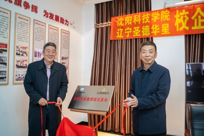 随后,孙校长和赵总经理代表双方正式签署了校企合作协议,校方王鸿鹏副校长和企业方刘凯副总经理为校企合作、产教融合实践基地揭牌,校方袁德成副校长和企业方研究院肖林久院长为双师双能教师培训基地揭牌。这一重要合作项目的达成标志着学校与辽宁圣德华星化工有限公司在产学研合作领域迈出了坚实的步伐。