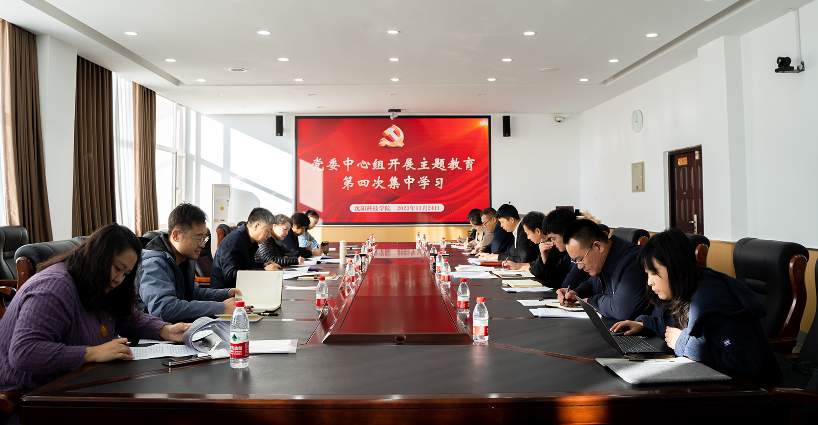 11月24日上午,学校党委理论学习中心组在第二教学楼505会议室开展学习贯彻习近平新时代中国特色社会主义思想主题教育第四次集中学习,围绕“讲诚信、懂规矩、守纪律”重要要求,“强化全面从严治党,坚守政治忠诚,永葆政治本色 ”开展集体学习。会议由党委书记耿乃国主持。