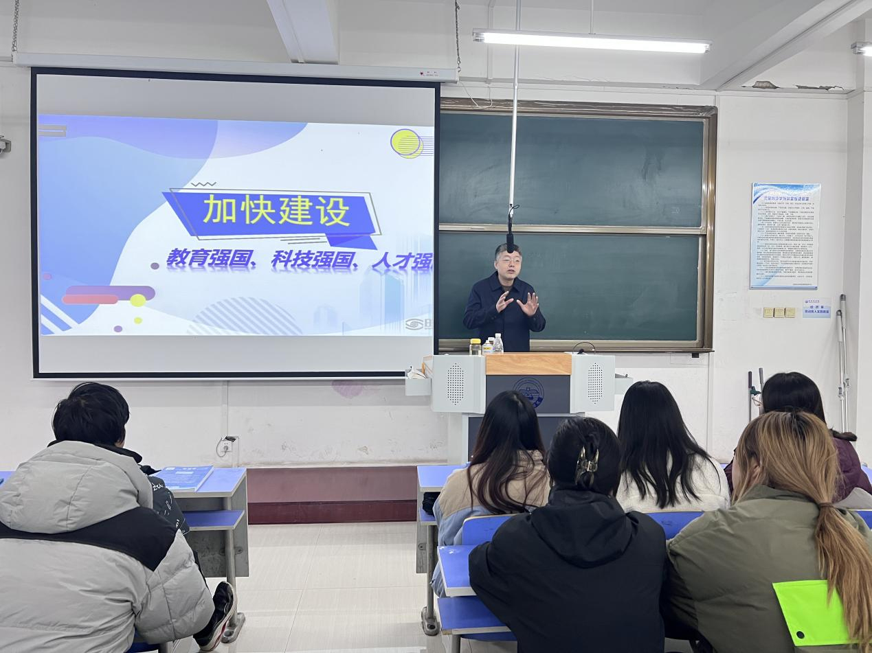近日,校党委书记耿乃国、校长孙玉红、副校长袁德成深入“形势与政策”课教学一线,为学生带来了一堂富有思想性、理论性、针对性的“形势与政策”课。课程以“加快建设教育强国、科技强国、人才强国”为题,深入剖析了当前国际国内形势的机遇与挑战,详细阐述了教育、科技、人才在国家发展中的重要性。