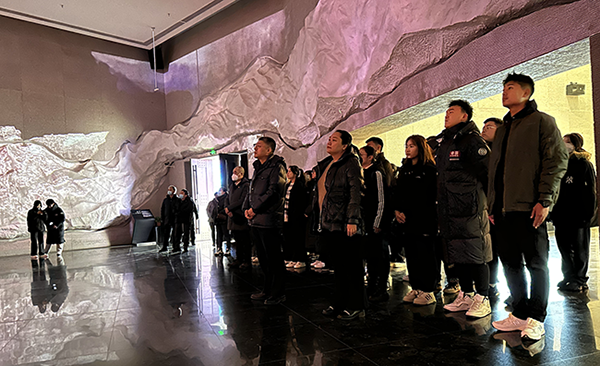 党委书记耿乃国一行抵达博物馆后,首先参观了馆内序厅和6个陈列展厅,博物馆资深讲解员韩啸老师详细介绍了九一八事变的历史背景、发展过程和深远影响,讲述了日本帝国主义发动九一八事变、奴役中国人民的罪行。博物馆通过大量文物、历史照片及多种现代化展示手段,真实反映了日本帝国主义策划、发动九一八事变及对中国东北进行残酷殖民统治的屈辱历史;生动再现了东北人民和全国人民一道,在中国共产党领导下不屈不挠、浴血奋战,最终取得抗日战争伟大胜利的历史画卷。通过参观使全体师生接受了一场深刻的革命传统教育、近现代史教育和爱国主义教育。