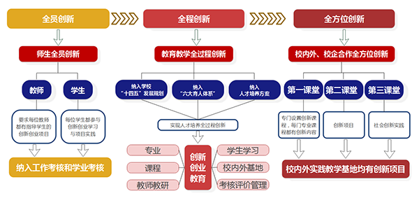 我们处在创新的时代,经济社会发展急速转型,通过创新创业改造传统产业升级,要求培养具有创新创业能力的应用型人才,因此,我校提出“三全”创新创业教育理念,出台了《云鼎官方网址关于深入推进创新创业教育与专业教育深度融合的实施意见》(沈科发〔2023〕349号)。