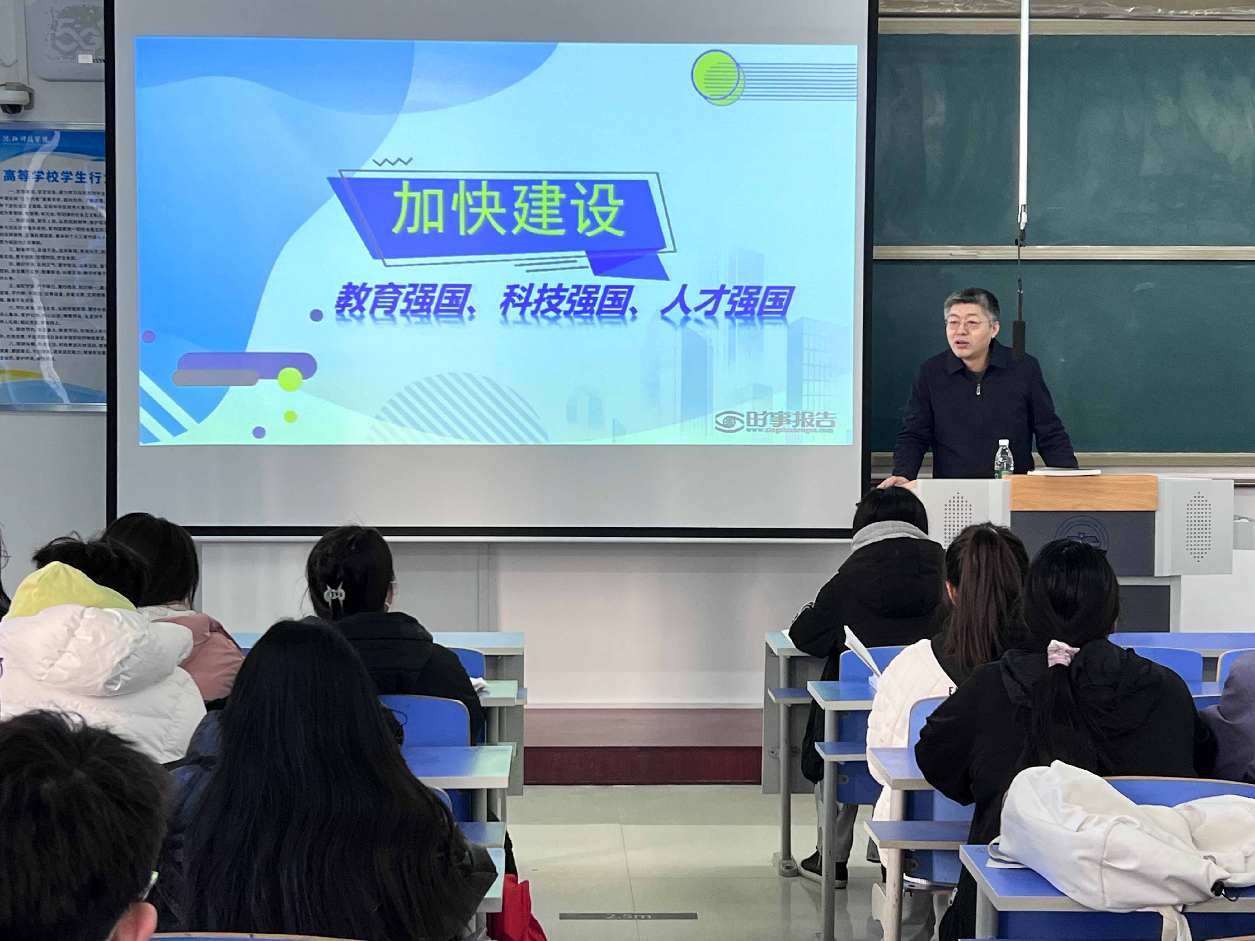 党委书记耿乃国以生动的案例、翔实的数据、平实的语言,循序渐进地为学生讲解教育优先发展、科技自立自强、人才引领驱动的辩证关系,并强调加快建设教育强国、科技强国、人才强国,是时代赋予高校的重要使命。同时,鼓励全体学生要胸怀祖国、放眼世界、面向未来,努力成为我国科技自立自强的实践者、推动者、引领者,为加快实现中华民族伟大复兴的中国梦贡献智慧和力量。