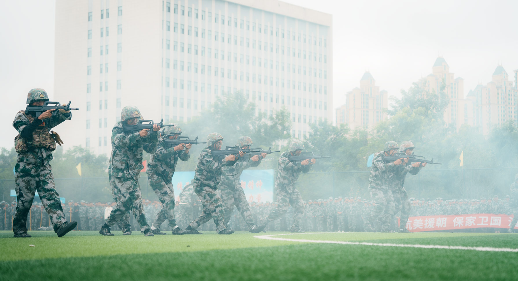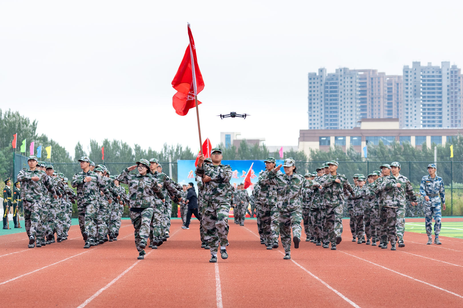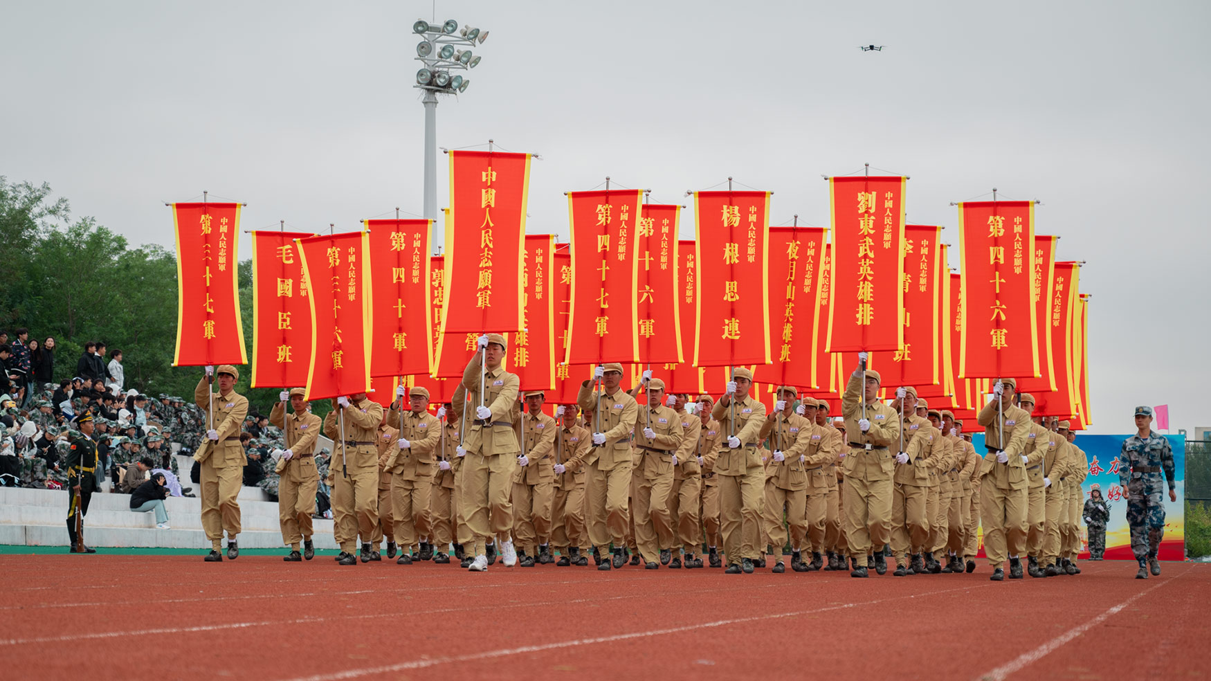 军训成果汇报分列式环节,各营连有序组织各个方队,他们步伐整齐、口号嘹亮、精神饱满、斗志昂扬通过主席台,接受检阅。