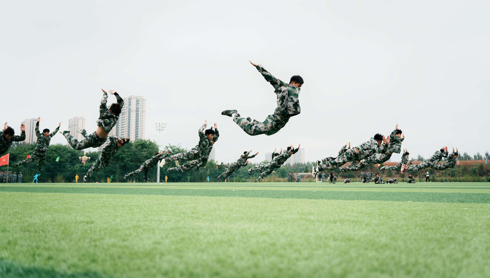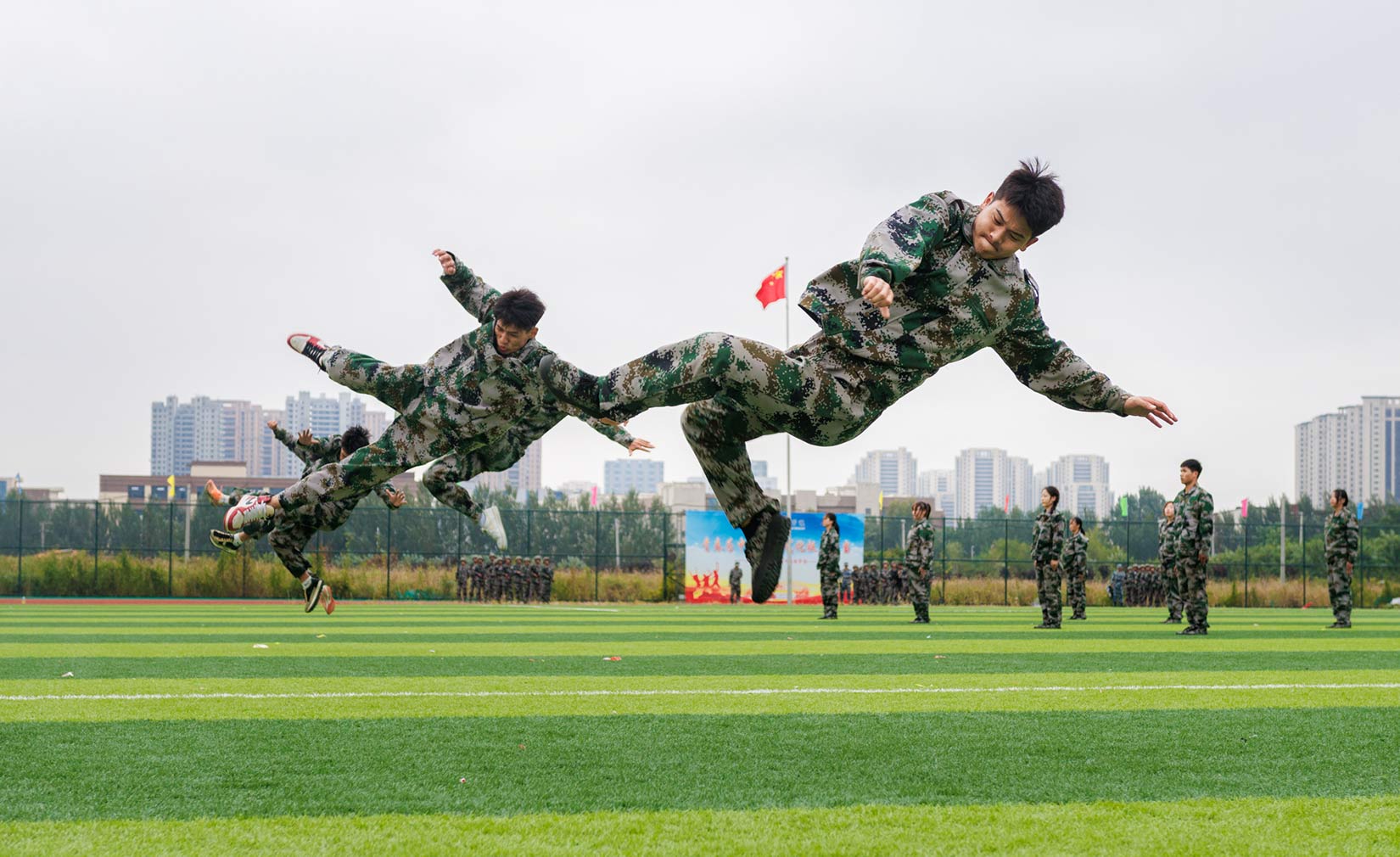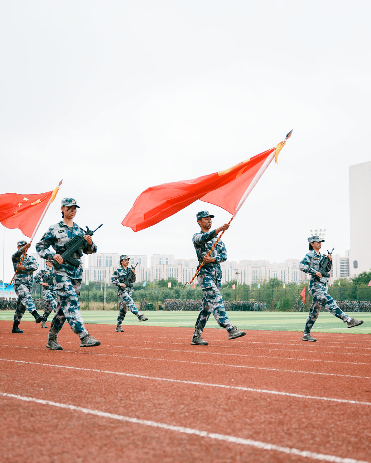 军训成果汇报分列式环节,各营连有序组织各个方队,他们步伐整齐、口号嘹亮、精神饱满、斗志昂扬通过主席台,接受检阅。