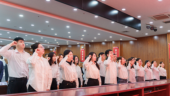 随后,在马克思主义学院赵家和教授的带领下,全体新教师面向国旗,进行了庄严的宣誓。
