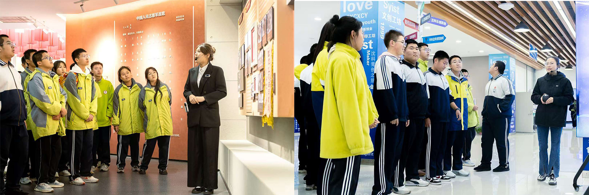 随后,来访师生来到校史馆、抗美援朝精神育人实践基地、大学生创新创业孵化基地、学生食堂、寝室等多地参观。过程中大家一同回顾了沈科建校发展历程、了解到学校育人特色,深入感受到沈科温馨舒适的校园生活与良好的学习氛围。