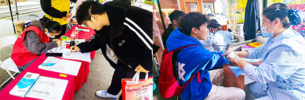青春热血,构筑爱与希望的连接。献血活动现场,同学们积极配合医护人员有序进行献血活动。有不少多次参与公益献血的同学,早已熟悉了献血流程,淡定自若;也有初次参与公益献血的同学,有些小紧张,但也义无反顾地挽起衣袖。与此同时,现场的志愿者们协助医护人员完成前期准备工作,提供了各种贴心的服务,耐心为同学们讲解献血的注意事项,引导同学们进行信息填写、排队体检、有序献血,还为同学们准备好了精美的礼品,这些礼品承载着学校与社会对献血者们深深的敬意与感激。