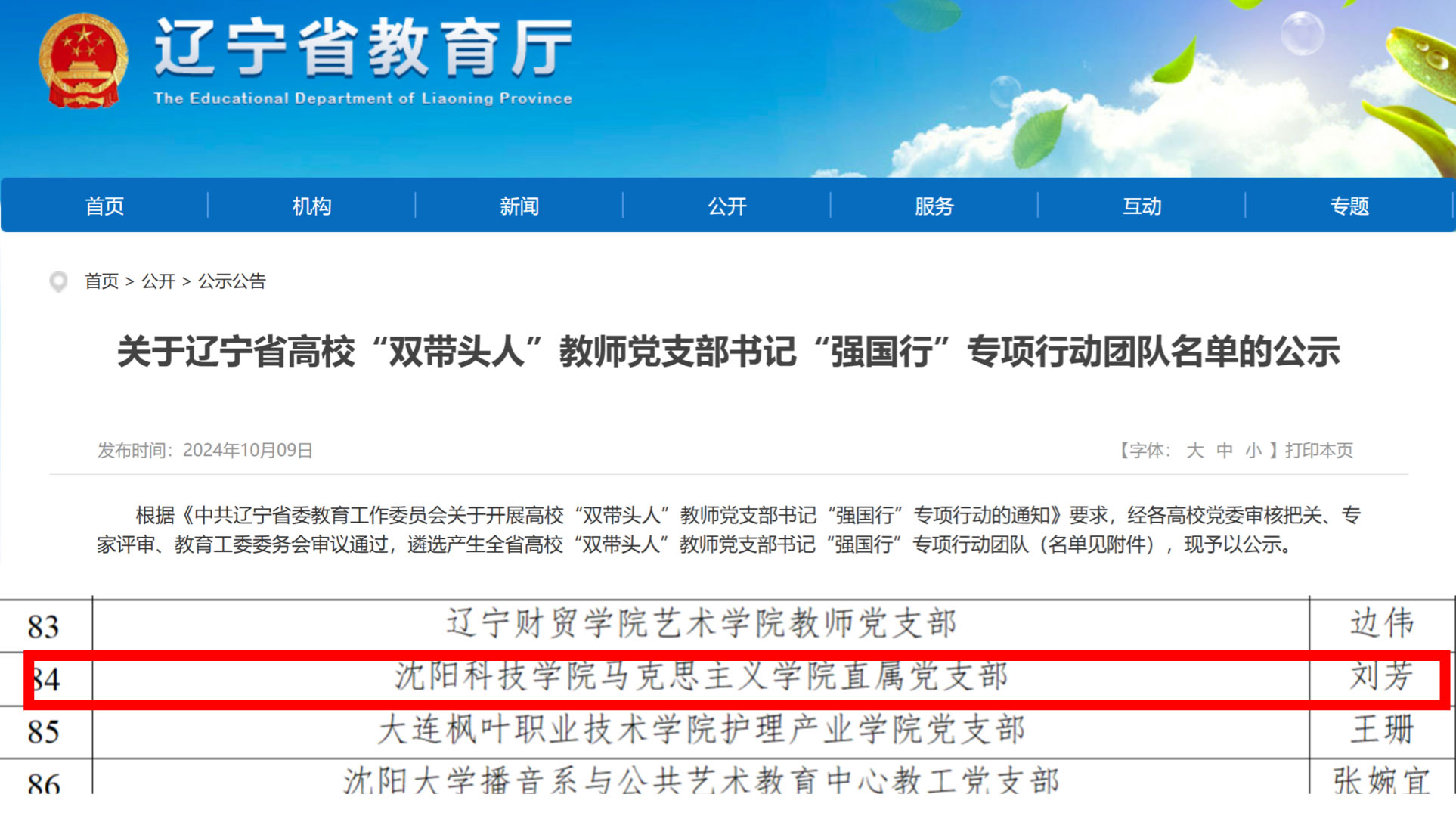 近日,根据《中共辽宁省委教育工作委员会关于开展高校“双带头人”教师党支部书记“强国行”专项行动的通知》要求,经过严格的审核把关和专家评审,我校马克思主义学院直属党支部入选辽宁省高校“双带头人”教师党支部书记“强国行”专项行动团队。