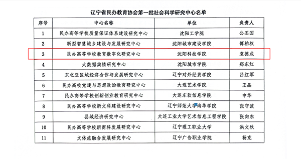 近日,辽宁省民办教育协会《关于公布辽宁省民办教育协会第一批社会科学研究中心评审结果的通知》(辽民教协发 [2024] 2号),我校成功获批2024年辽宁省民办教育协会第一批社会科学研究中心中的“民办高等学校教育数字化研究中心”。
