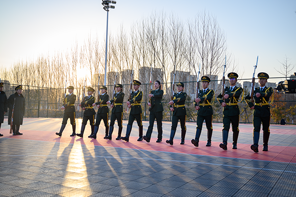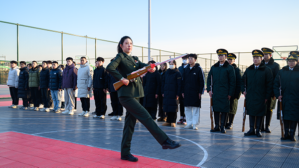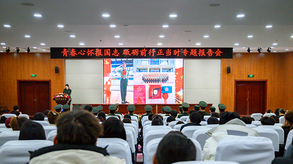 本次报告会特邀请曾服役于中国人民解放军司礼仪仗队原队员李林晔同志作专题报告。李林晔身着笔挺军装,英姿飒爽,瞬间点燃了现场庄重而热烈的氛围。她以自身曾经的训练视频和参加国际军乐节等大型活动的图片及视频资料为切入点,生动讲述了在仪仗队中刻苦训练、锤炼技能本领和塑造坚强意志品质的青春岁月,从日复一日的严格训练到国际舞台上的飒爽英姿,每一幕都是对国家荣誉的深情诠释,也是对青年责任与担当的生动注解。