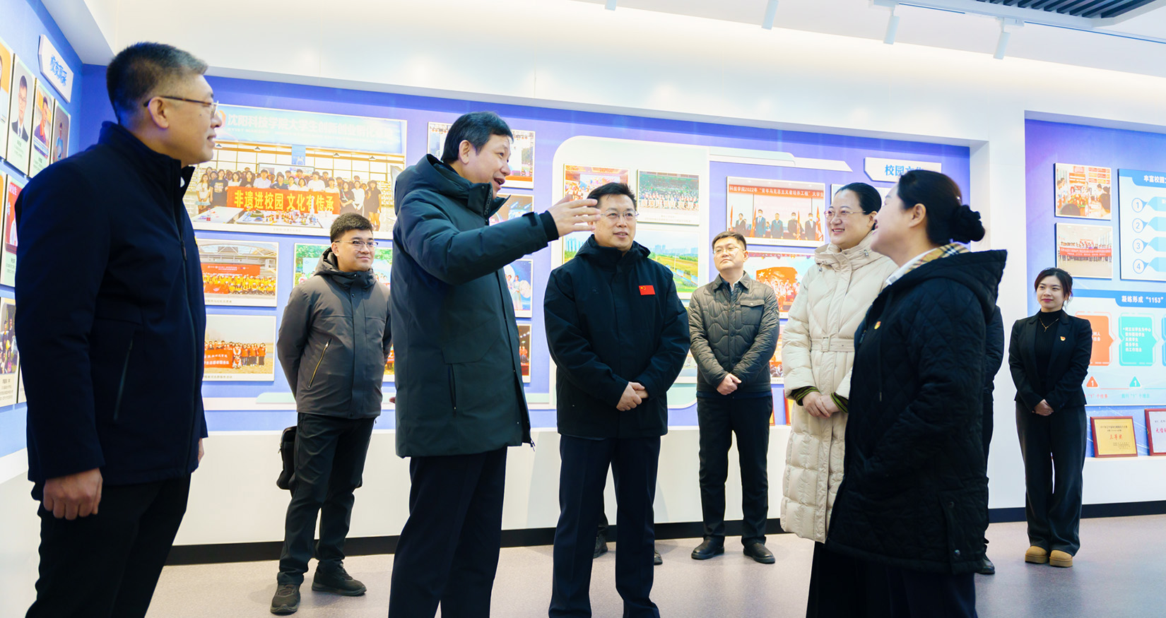 靳国卫指出,学校要充分发挥党建工作的重要功能,以“一突出五推进”为工作思路的高质量党建,全面推进校风、教风和学风建设。要深化产教融合,推动人才产业同频共振,充分结合区域经济与产业需求,着力在前沿领域拓展开设契合产业发展趋势的新兴专业方向,打造独具特色与影响力的专业集群。要提高学校红色育人基地的利用率,明确高校思政的价值意蕴,不断创新和完善“大思政”育人模式。要深入实施人才强校战略,通过研修访学、合作交流、能力培训等形式助力青年教师专业成长与职业发展,大力提升教学科研水平。引进高素质人才,充分发挥银龄教师优势,打造高水平专业化师资队伍,提高办学质量,办好人民满意的教育。要以统筹发展和安全为指引,认真排查影响学校安全稳定问题隐患,通过宣传教育、技能培训、督导检查,增强学校安全治理能力,切实筑牢学校安全稳定的发展基础。