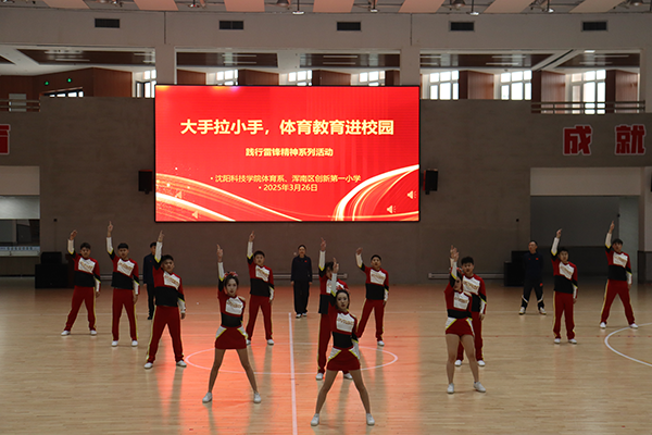 3月26日,我校体育系师生走进浑南区创新第一小学,开展“大手拉小手 体育教育进校园”主题活动。活动伊始,沈科学子以精湛的技艺和饱满的精神状态,为创新一小的师生们表演了啦啦操、花样跳绳等体育项目,队员们随着动感的音乐,以整齐划一的动作点燃了全场的气氛。此次活动以雷锋月为契机,既是高校服务地方教育的生动实践,也是体教融合的创新探索。