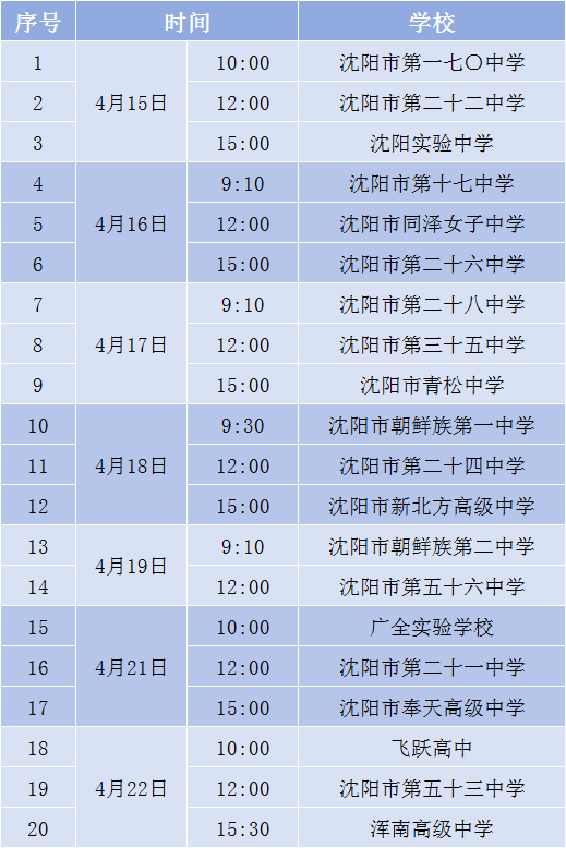 说明:以上行程在实际走访过程中可能会略有变动,请以当天高中通知为准。
