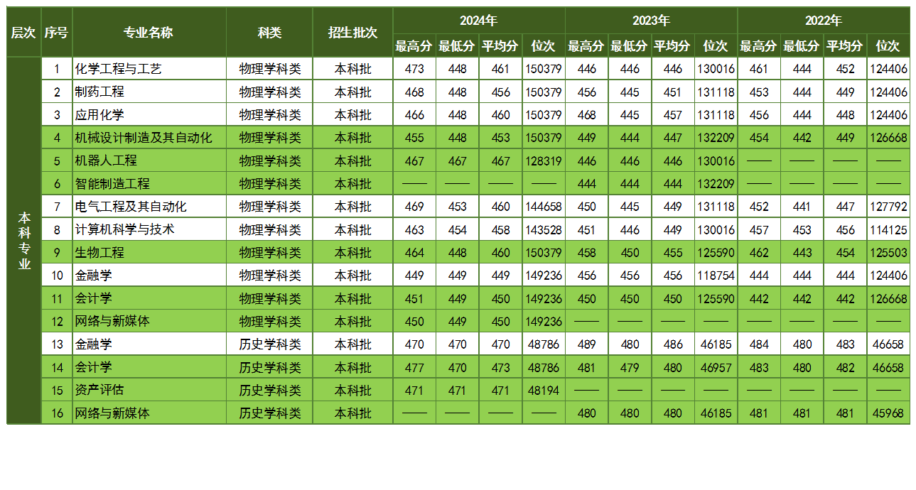 我校近三年江西省录取分数线及位次表