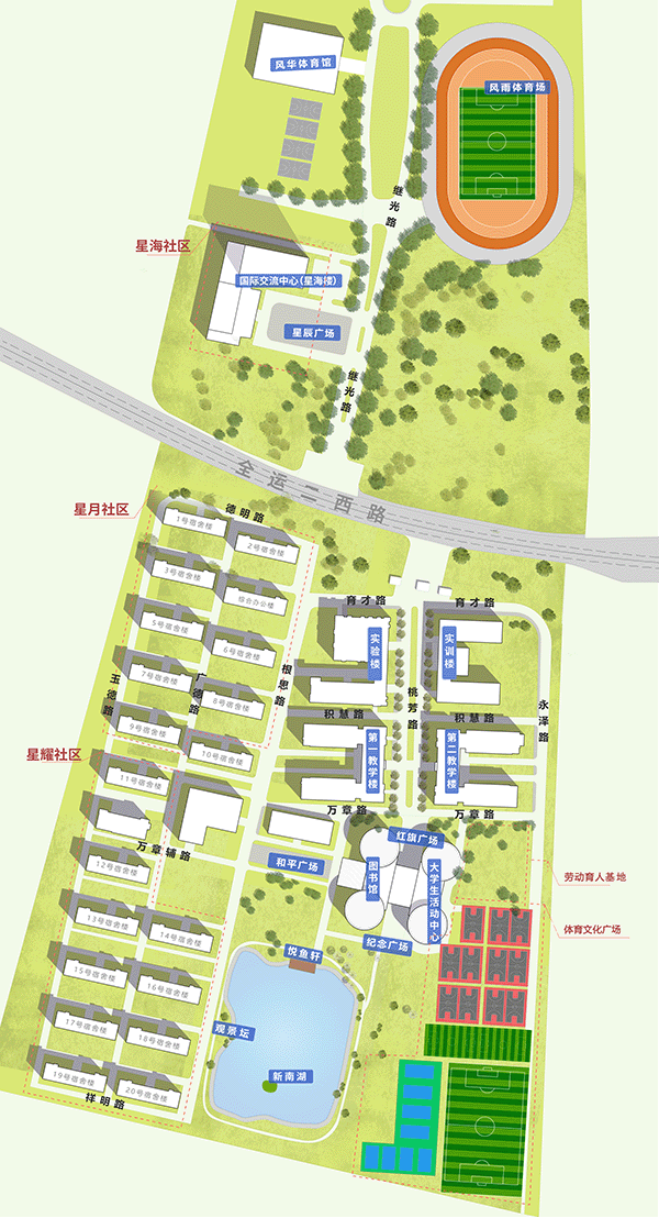 学校建有标准化精装4人间学生公寓,空调、电视、冰箱、洗衣机等设施一应俱全,并配有运动、文娱等校园生活场所,环境优美、宜学宜居,打造“家”的氛围。